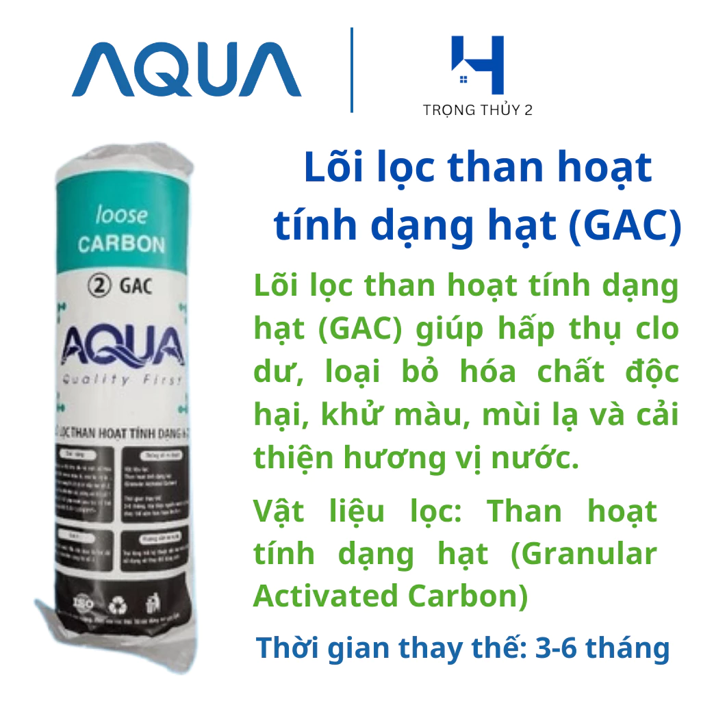 Lỗi 2 (GAC - Loose Carbon): Than hoạt tính dang hạt giúp khử mùi clo, hóa chất và chất hữu cơ.