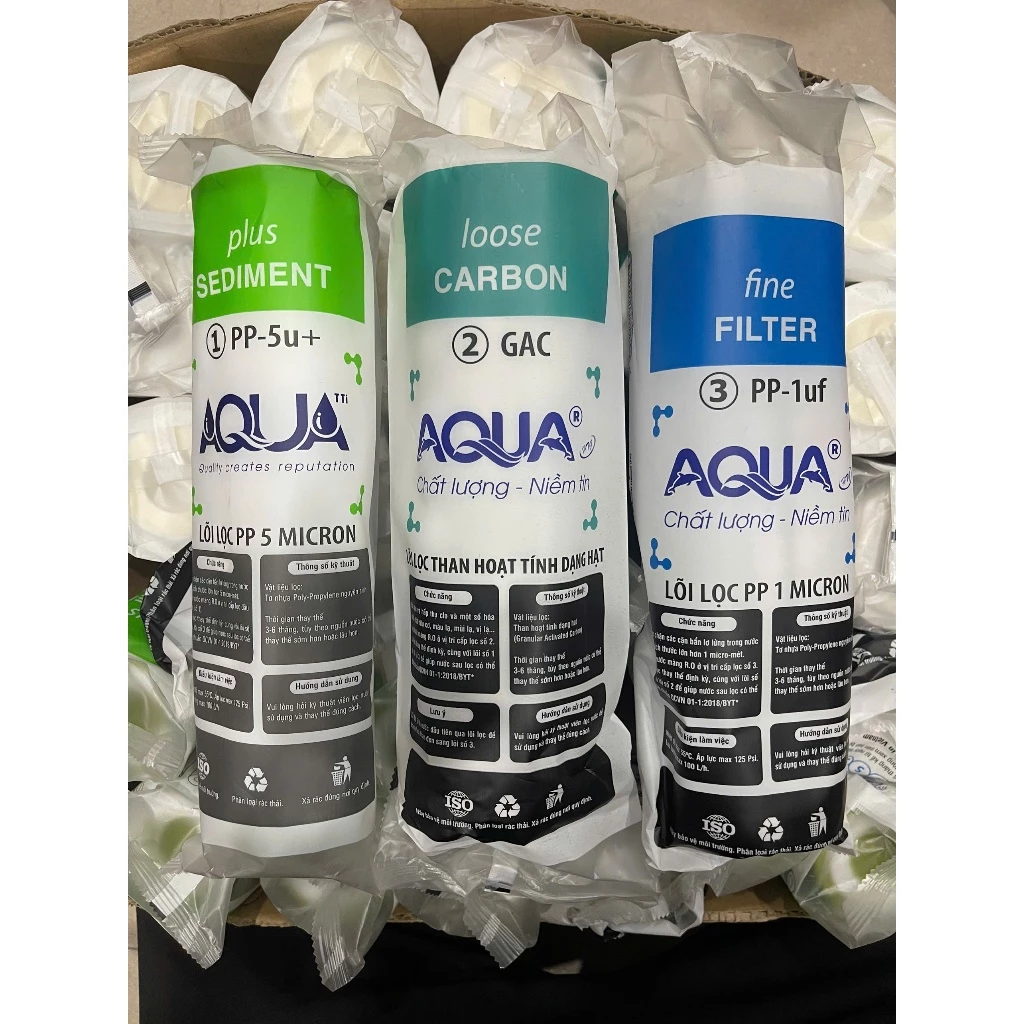 Bộ 3 Lõi Lọc Nước AQUA Số 1,2,3 CHÍNH HÃNG - Dùng Cho Các Loại Máy Kangaroo, Karofi, Sunhouse,...