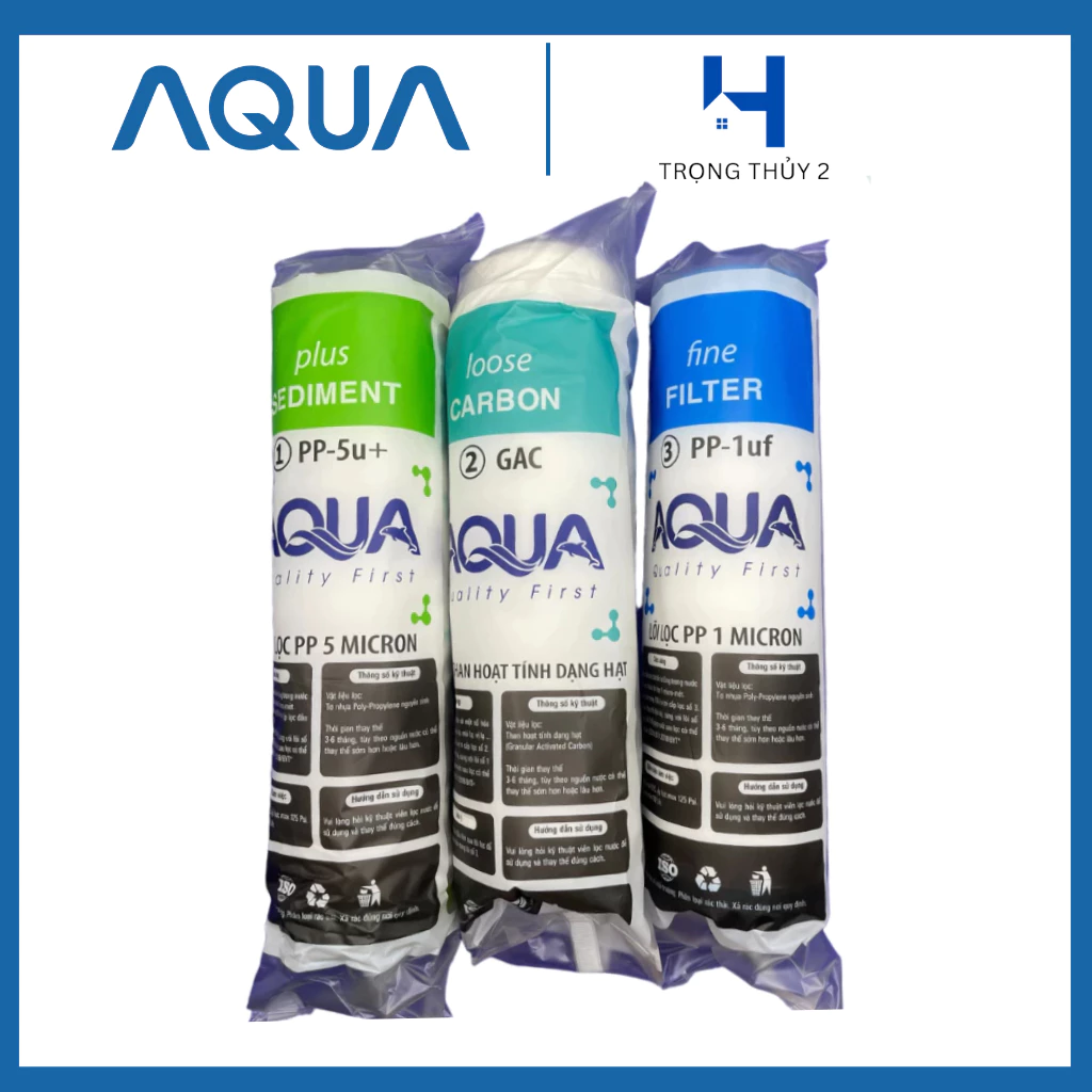 Bộ 3 lỗi lọc nước AQUA là giải pháp lọc thô hiệu quả, bảo vệ toàn diện cho máy lọc nước nhà bạn. Sản phẩm được thiết kế chuẩn size 10 inch, dùng được cho hàu hết các dòng máy lọc RO và Nano thông dụng trên thị trường.