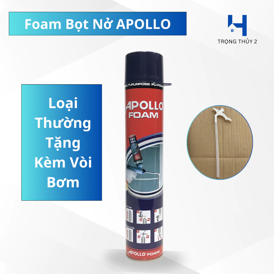 :Foam nở Apollo 750ml là loại keo bát cao su phụ nở chuyên dùng trong ngành xây dựng, thích hợp cho việc bịt kín các khe hở, cách âm, cách nhiệt và tăng độ bàn chắc cho các công trình nội thất và ngoài trời.....