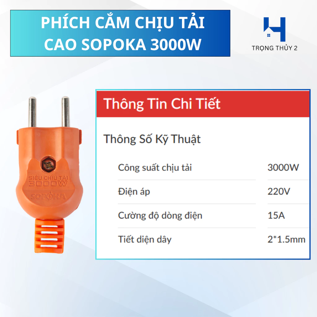 Phích Cắm Siêu Chịu Tải SOPOKA 3000W – An Toàn, Bền Bỉ, Đáng Tin Cậy