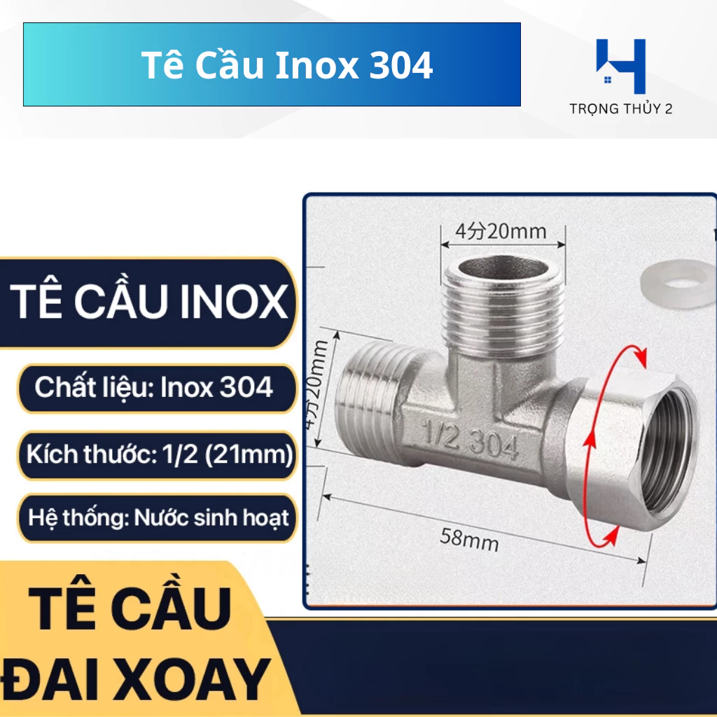 Tê Cầu Inox 304 Răng Xoay Phi 21 – Chống Gỉ Sét – Kết Nối Chắc Chắn – Bền Đẹp Dễ Lắp Đặt