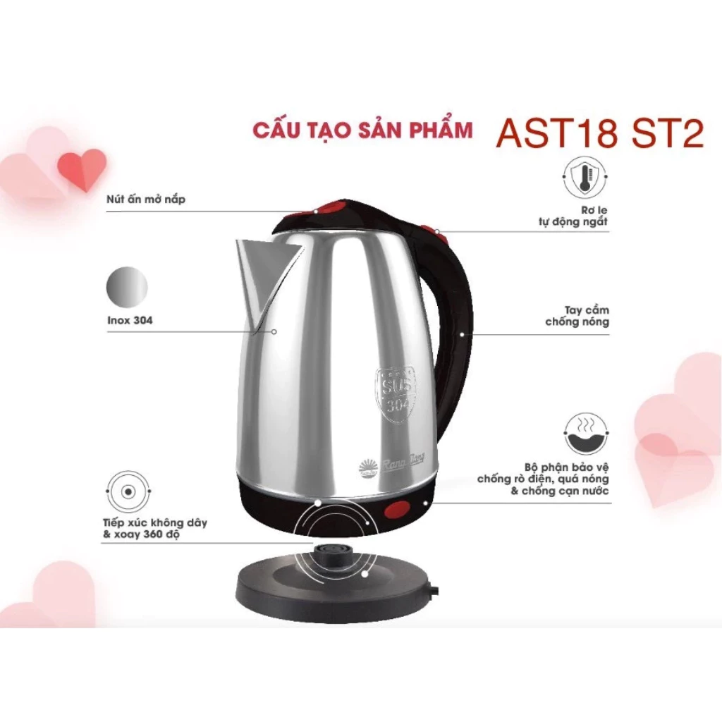 Ấm Đun Siêu Tốc Rạng Đông RD-AST18ST2 1.8L – Inox 304, Tự Ngắt, Đun Nhanh, Bảo Hành 12 Tháng