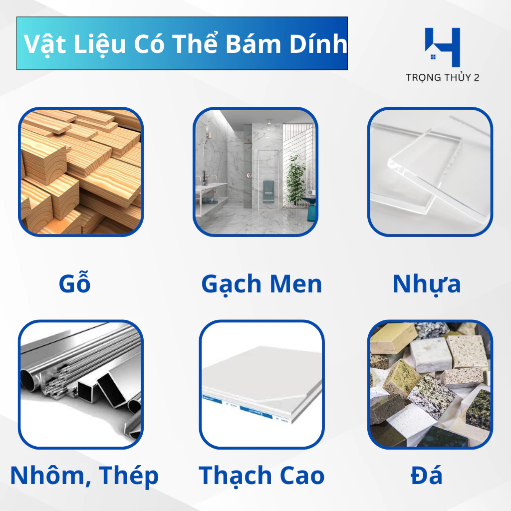 ✅ Dán được gỗ, gạch men, bê tông, nhựa, kim loại, đá, gương