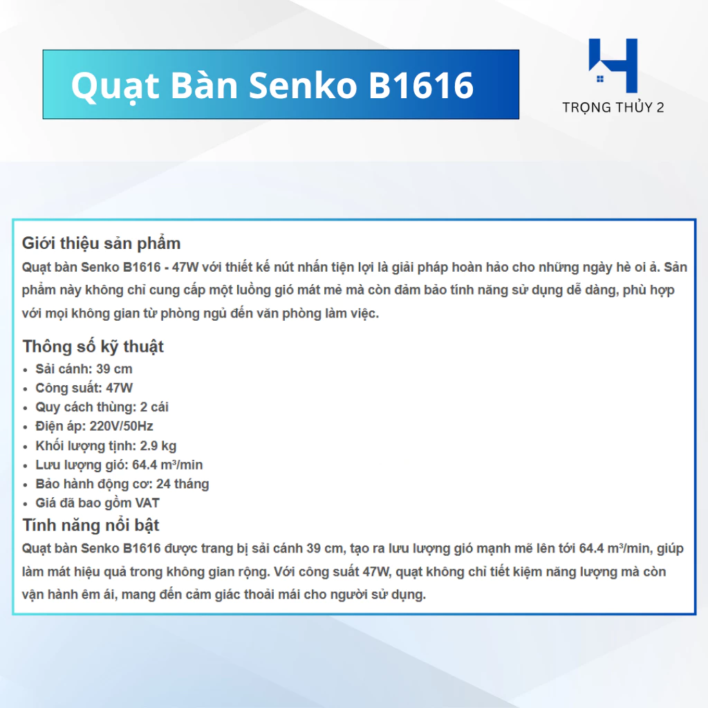 #QuatBanSenko #SenkoB1616 #QuatBanChinhHang #QuatGioManh #SenkoDienCo #ShopeeUni #DoGiaDung #QuatGiaRe #QuatChoBanHoc #GiaDungChinhHang #BaoHanh24Thang #Senko #NhaCuaTienNghi