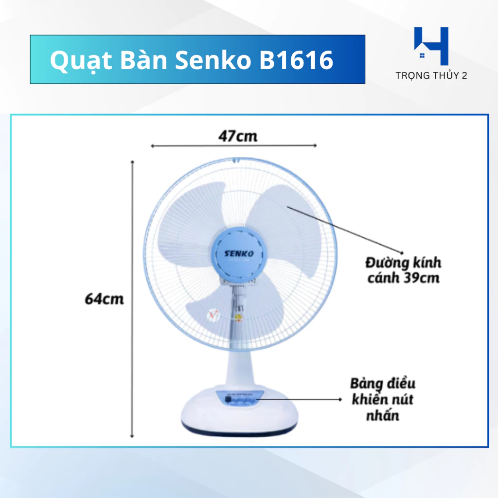 QUẠT BÀN SENKO B1616 – GÓC MÁT GỌN NHẸ – GIA ĐÌNH ƯA CHUỘNG