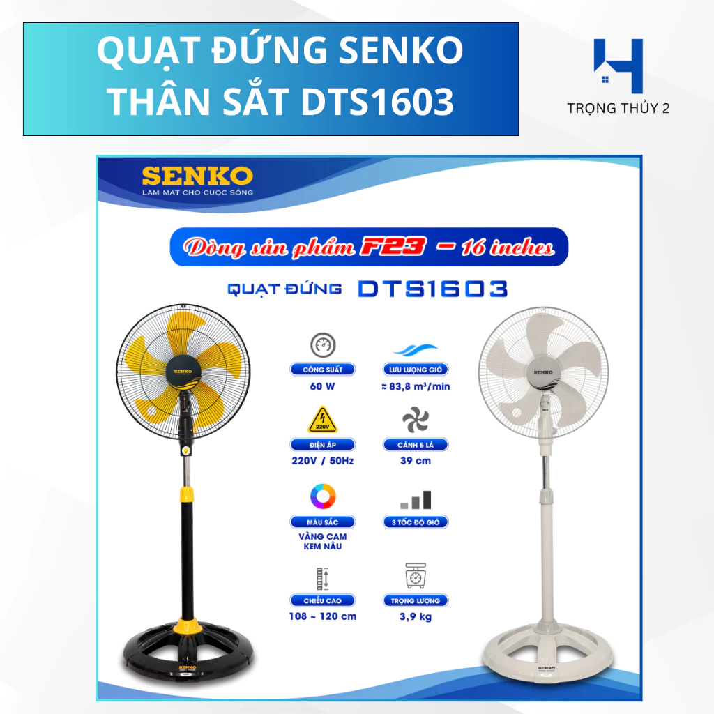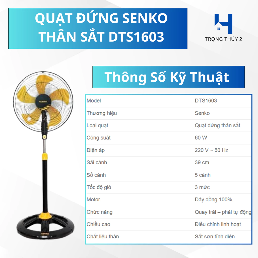 QUẠT ĐỨNG THÂN SẮT SENKO DTS1603 – GIÓ MẠNH, BỀN BỈ, AN TOÀN 🔹