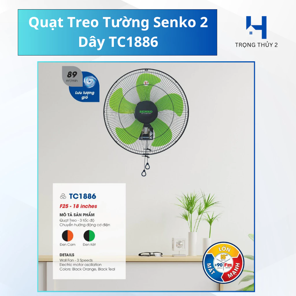 Quạt Treo Tường Công Nghiệp Senko TC1886 – Công Suất 75W – Gió Mạnh – Siêu Bền – Chính Hãng Bảo Hành 24 Tháng 🔥